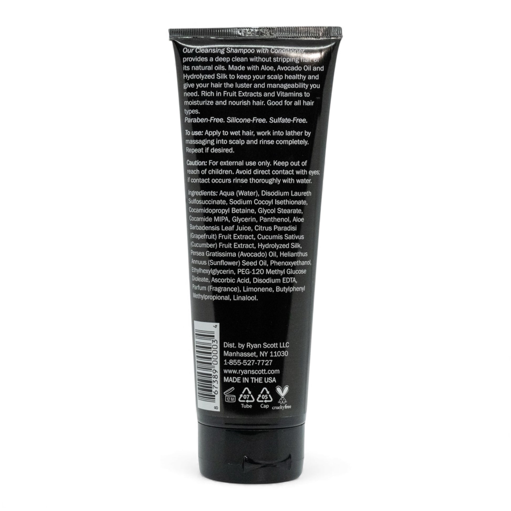 Our Cleansing Shampoo with Conditioner, provides a deep clean without stripping hair of its natural oils. Made with Aloe, Avocado Oil and Hydrolyzed Silk Protein to keep your scalp healthy and give your hair the luster and the manageability you need. Rich in Fruit Extracts to moisturize and nourish hair. Good for all hair types.